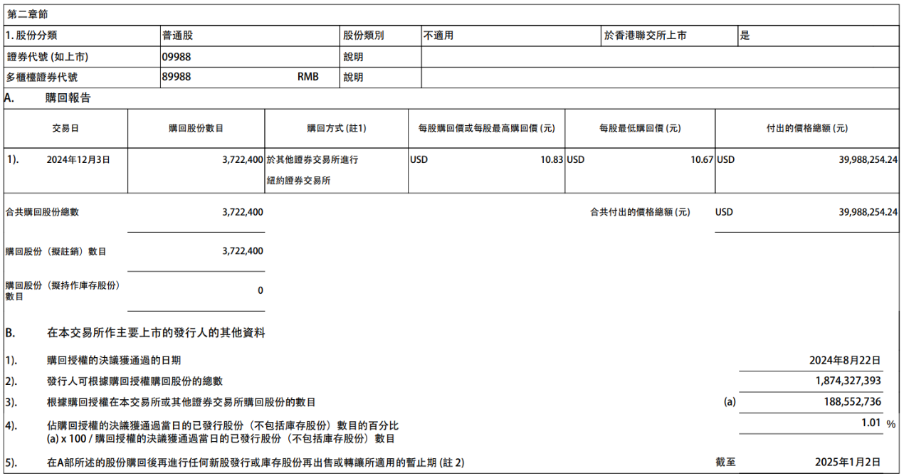 阿里巴巴:12月3日耗资约3998.83万美元回购372.24万股公司股份提供炒股配资开户阿里巴巴:12月3日耗资约3998.83万美元回购372.24万股公司股份