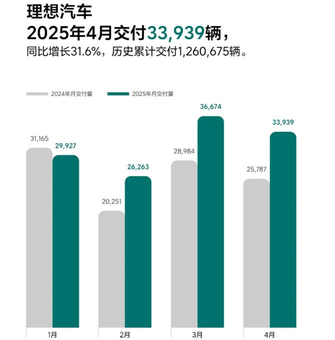 其中,理想汽车4月的交付量达3.39万辆,排名造车新势力第三位。而在2024年的月度交付量排名中,理想汽车多次位居造车新势力首位。